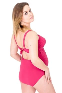 Ausgestattet mit herausnehmbaren Polstern und einer sehr weichen, elastischen Unterstützung der Brust innen als Rundum-Bustier, erfreut sich dieser Umstandsbadeanzug sehr großer Beliebtheit! Verstellbare Träger hinten bieten hohen Tragekomfort und gekonnte Raffungen umschmeicheln jede Rundung vorteilhaft und stützen diese sanft.