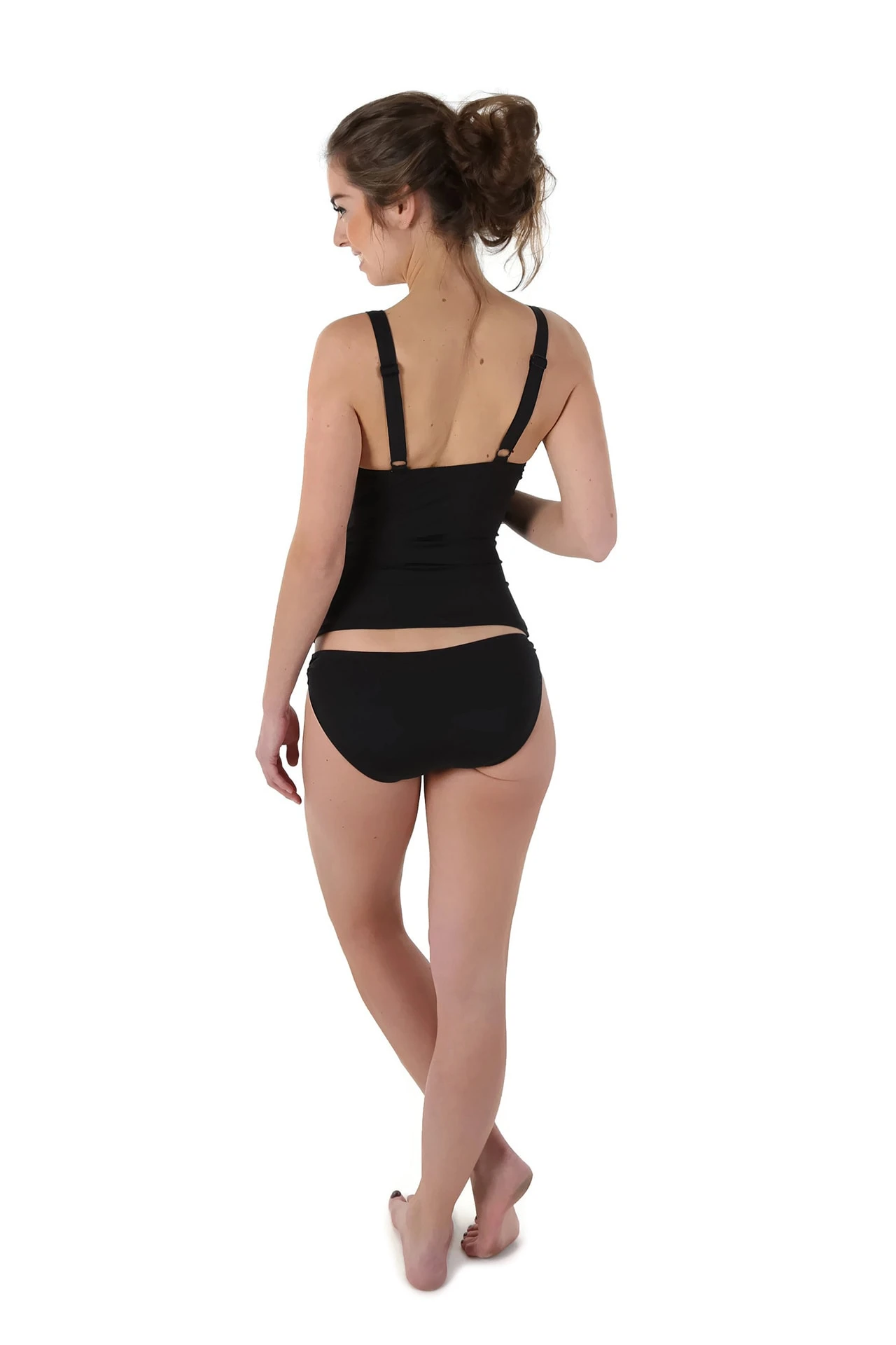 Das Umstandstankiniset AMANDA in klassischem Schwarz kommt in den Größen S-XXL aus edler Mikroqualität besonders edel daher, ist ideal geschnitten & passend für Körbchengrößen B C bis D als Softcup und hat keine Bügel. Es fällt eher klein als groß aus.