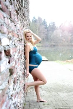 Das Umstandstankiniset AMANDA in einem edlen Smaragdgrün-blau kommt in den Größen S-XXL aus edler Mikroqualität besonders edel daher, ist ideal geschnitten & passend für Körbchengrößen B C bis D Soft-Cups und hat keine Bügel.